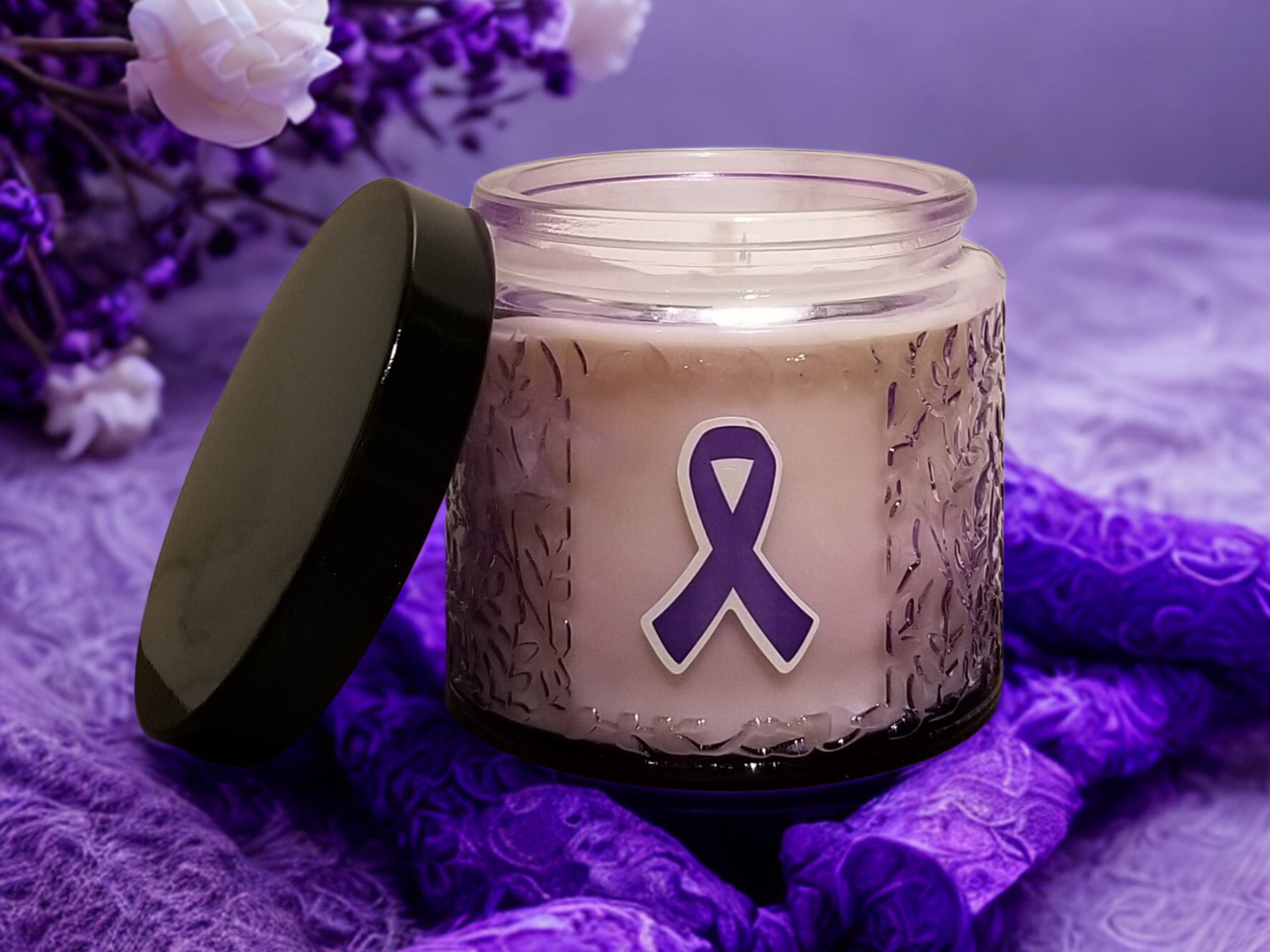Rustic Creations USA has supported Dena for the past 4 years to help her raise money to end this disease and this year is no different. Right now is a great time to purchase Locally Hand-Poured Premium Soy Candles to support the fight. Each candle is 9-ounces and poured into an purple folium embossed glass jar with a metal black lid, a personalized label with the scent name on it is included.